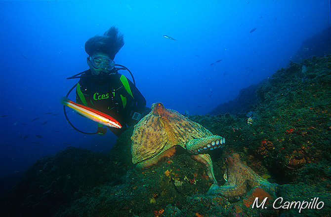 El macho corteja a la hembra y si es aceptado realiza la cópula introduciendo unos de sus brazos modificados para tal fin en el interior del ovioducto de la hembra como se puede apreciar en la foto.