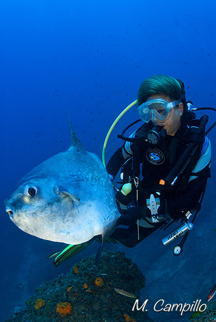 Puede tener un tamaño de más de 2 metros de diámetro y pesar más de una tonelada, aunque en nuestras latitudes suele ser más pequeño. Su cuerpo gris plateado es muy plano y en forma de disco y su aleta caudal se ha reducido prácticamente a un pequeño borde con ondulaciones. Su nombre vulgar es perfecto, aunque curiosamente en inglés es llamado “sun fish”, pez sol.