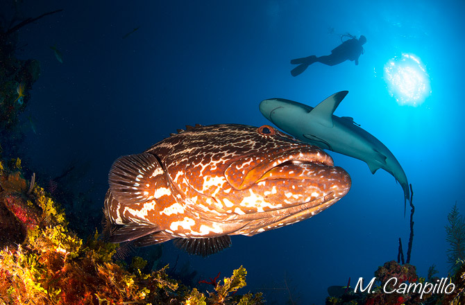 En nuestro viaje a Los Jardines de la Reina en Cuba el pasado noviembre, a parte de la sorpresa de poder fotografiar cocodrilos y tiburones, una de las cosas que más nos sorprendió fue la gran cantidad y variedad de meros que pudimos observar.