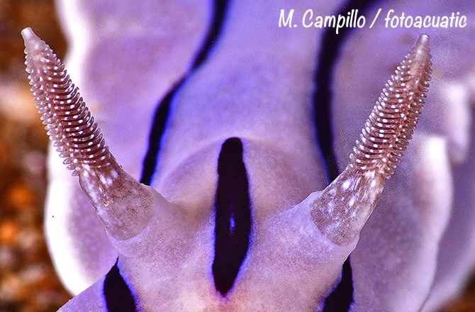 Ya hemos hablado en otras ocasiones de los nudibranquios en esta sección. Esos llamativos y coloridos moluscos marinos con su penacho de branquias a la vista en el dorso, de donde les viene el nombre. Pero tienen también otra característica significativa. Un par de protuberancias en la cabeza semejante a “cuernos” llamadas rinóforos, que juegan un papel tan importante en estos moluscos, que muchas especies tienen la capacidad de retraerlos cuando se encuentran en peligro