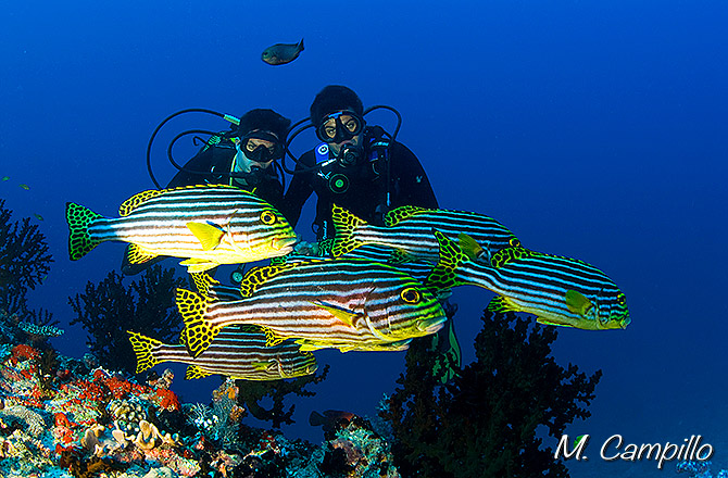 No sé si me gusta más el grupo de delante o el de detrás formado por mis dos retoños. En cualquier caso, a ellos los tengo más o menos a mano, pero para ver a “los labios dulces” hay que desplazarse a las islas Maldivas en el Océano Índico.