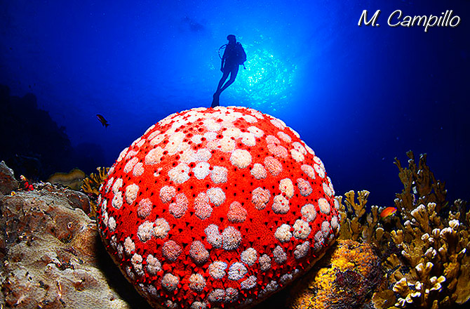 Hay muchísimas especies de estrellas de mar que siempre asociamos con la forma típica de un cuerpo central del que salen radialmente cinco brazos aunque pueden ser más. Sin embargo, no todas las estrellas de mar tienen la forma de la que proviene su nombre común. Como es el caso de la conocida vulgarmente como Estrella Cojín o Alfiletero, Culcita novaeguineae, de forma abultada y perfil pentagonal que a veces es prácticamente redondo y en la que los brazos como tal están ausentes.