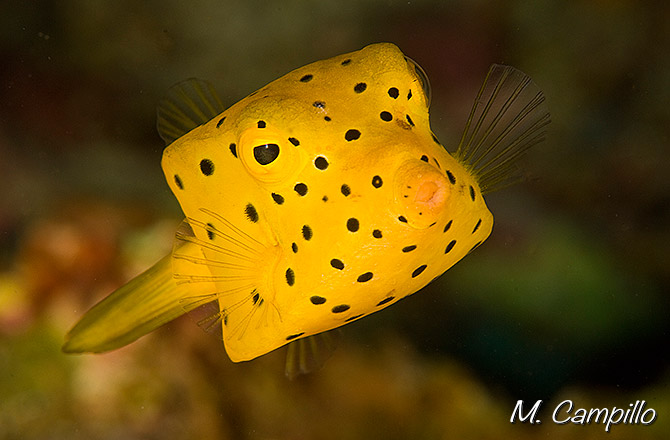Son venenosos, como anuncia sus fuertes y llamativos colores que podemos ver en este minúsculo dado amarillo con lunares negros que no es más que el bebé de ostraciun cubicus que en su fase adulta será más alargado y tendrá diferentes colores y librea.
