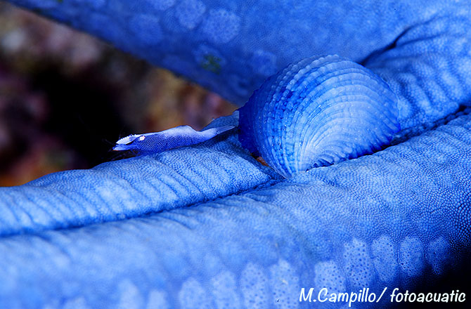 Algunos son auténticos parásitos como la pequeña conchita, Thyca crystallina, que vive en las estrellas Linckia multifora y Linckia laevigata (en la foto). Inserta su probóscide en la estrella y succiona los fluidos y tejido de la estrella