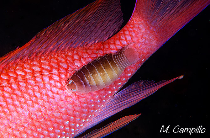 Los isópodos son un grupo de crustáceos, cuyas patas están provistas de ganchos con los que se sujetan fuertemente a su huésped. Estos parásitos succionan la sangre y erosionan los tejidos de los peces pues su boca penetran profundamente en los mismos, causándoles debilidad y en casos extremos la muerte. Esta se produce cuando el pez es pequeño en relación al tamaño del piojo y sobretodo cuando uno de ellos es invadido por varios individuos a la vez.